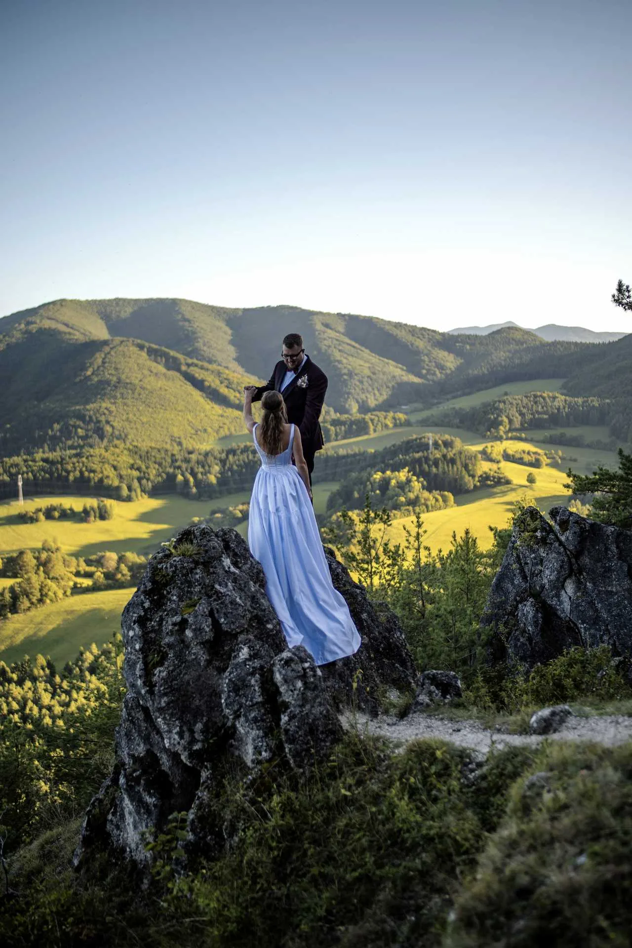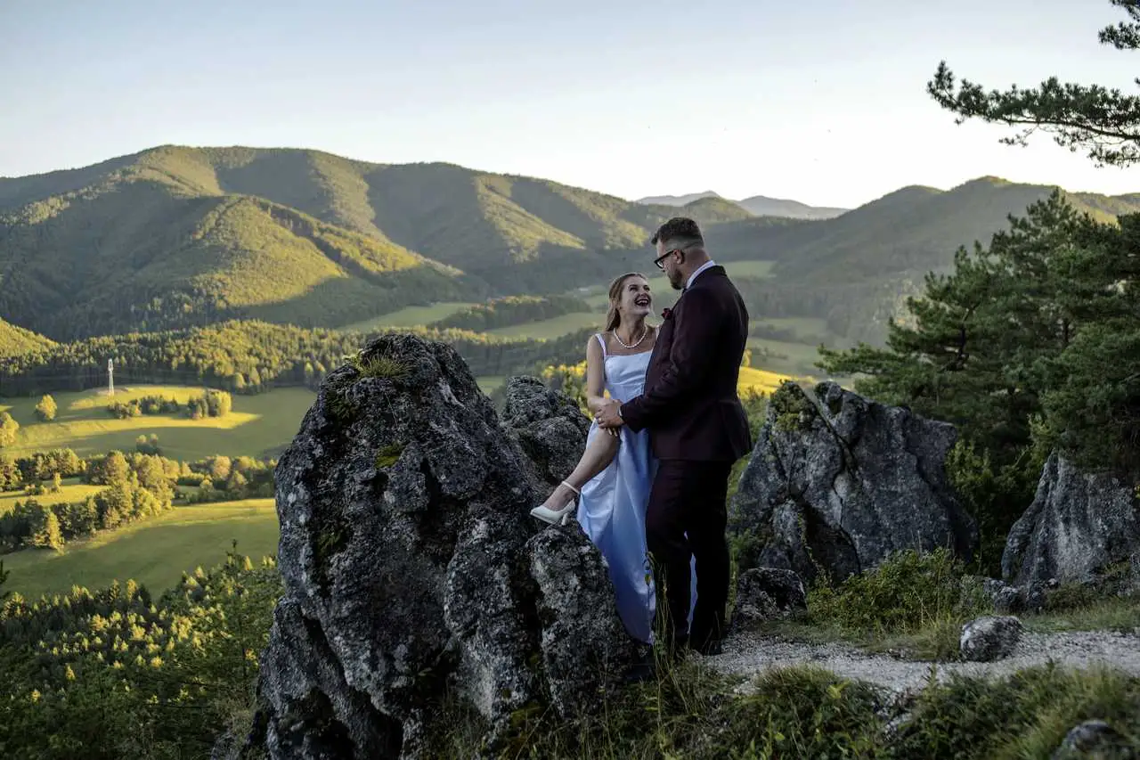 Zábery z fotenia na skalách pri západe slnka patria k tým najsilnejším, aké sme kedy točili. A hostina? To bola jedna veľká, úprimná párty, kde nechýbal smiech, dobré pivo a tanec do rána. Aďka a Peťo nám ukázali, že svadba má byť hlavne o tom, kto ste vy sami – a my sme radi, že sme tento ich neopakovateľný príbeh mohli zachytiť.“