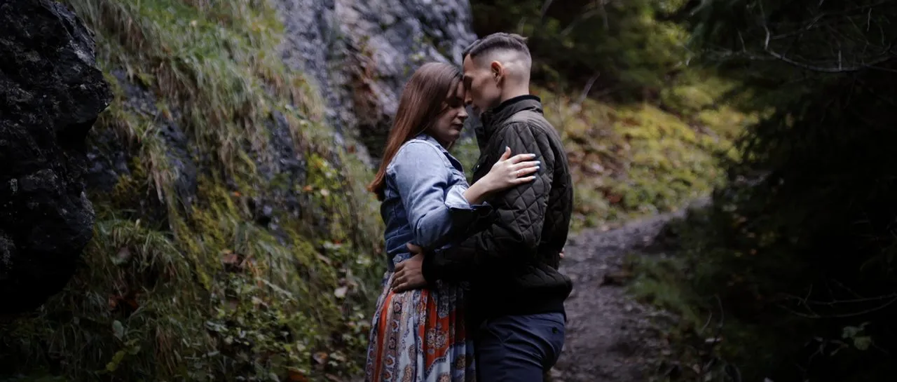 Tento svadobný film je však výnimočný aj vďaka kontrastu. Kým svadobný deň dýchal noblesou zámku, naše spoločné rande fotenie a natáčanie v iný deň nás zaviedlo do monumentálnej Manínskej tiesňavy. Surové skaly a divoká príroda Považia vytvorili dokonalý protipól k ich svadobnej elegancii a podčiarkli silu ich vzťahu.